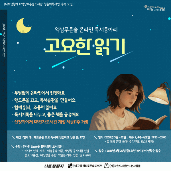 [역삼푸른솔도서관 X 니트생활자]독서 동아리 고요한 읽기