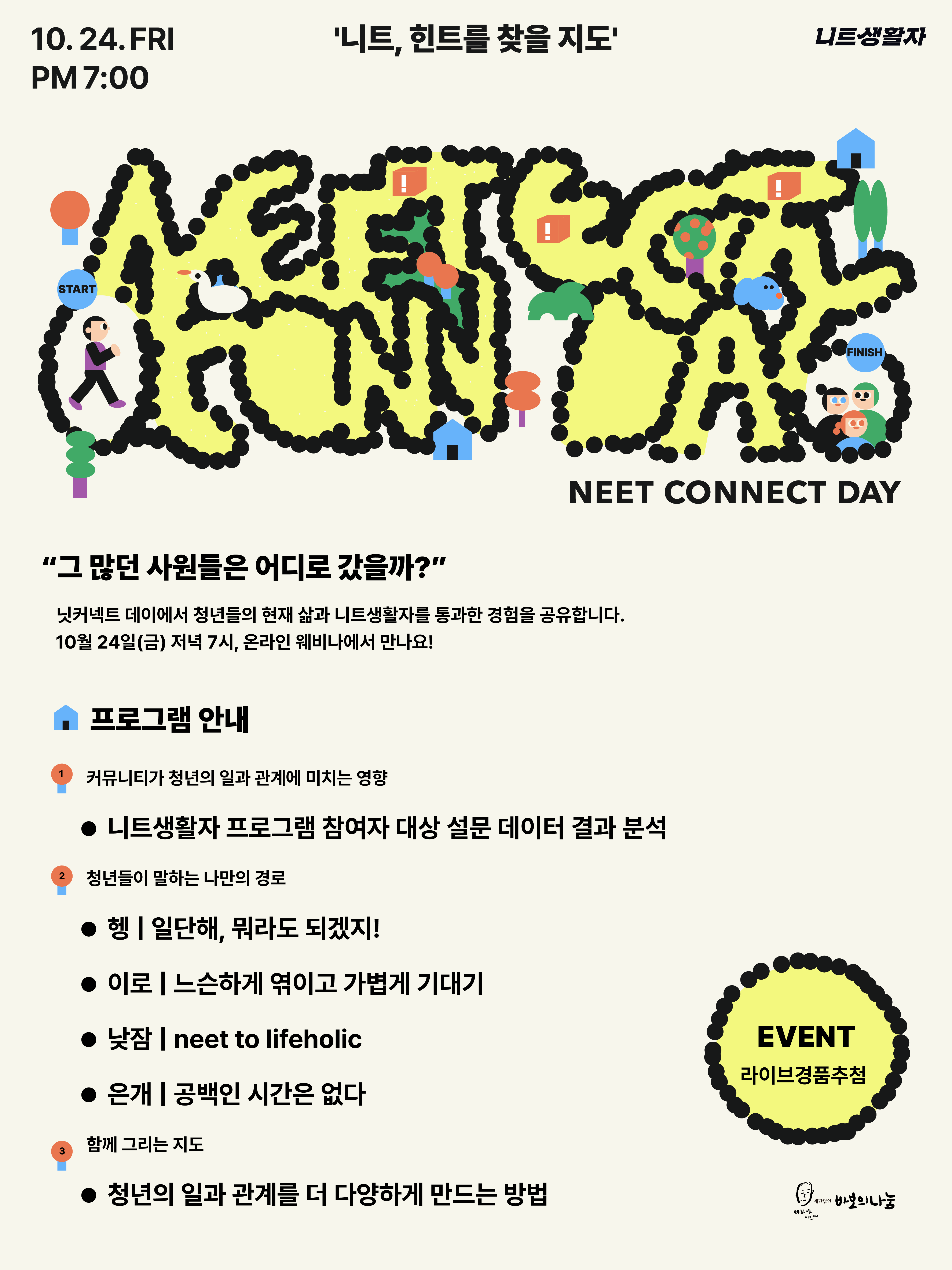 닛커넥트 데이에서는 청년들의 현재 삶과 니트생활자를 통과한 경험을 공유합니다.