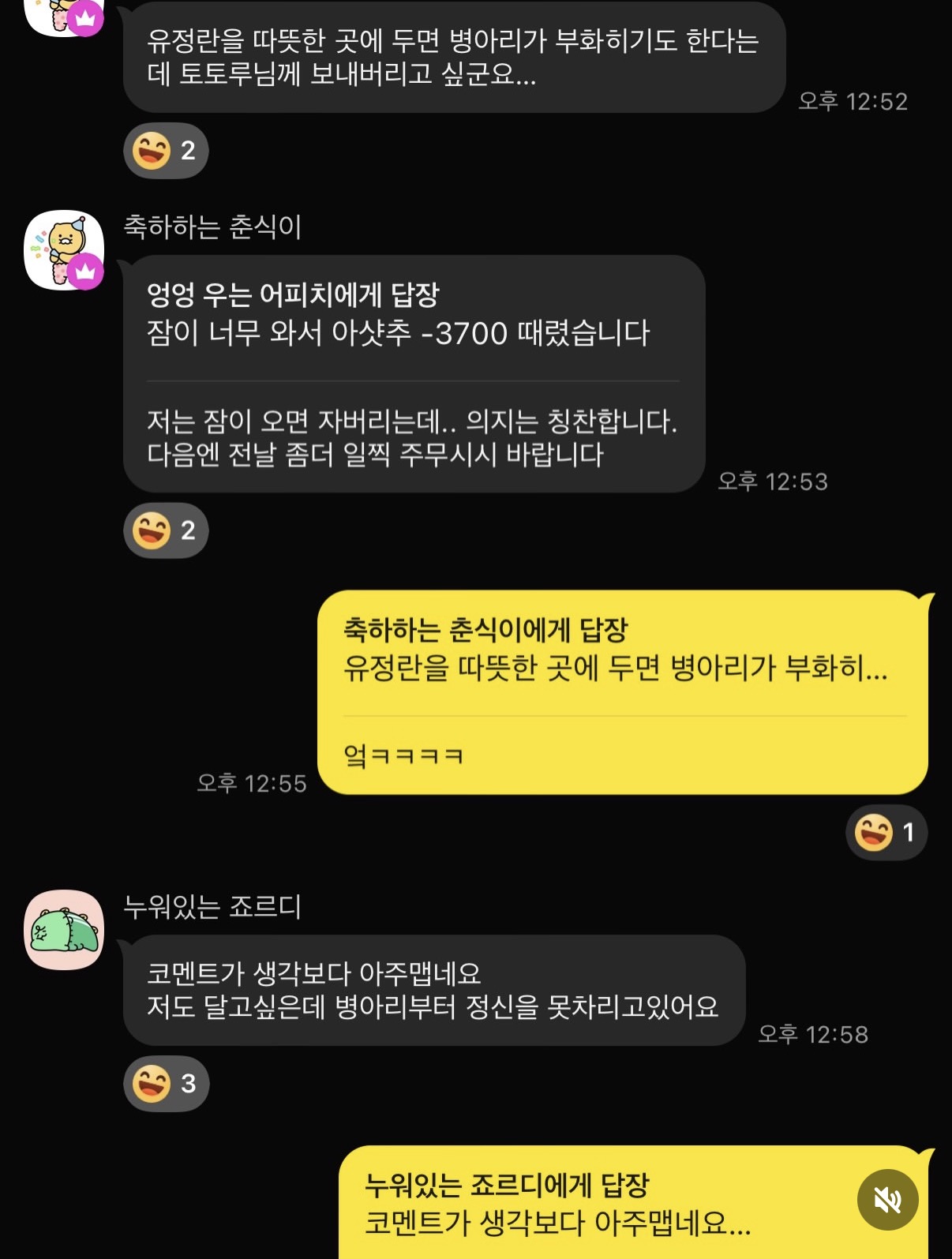 4. 대화가 길어지면 개인톡 이용을 적극 권장합니다 :)