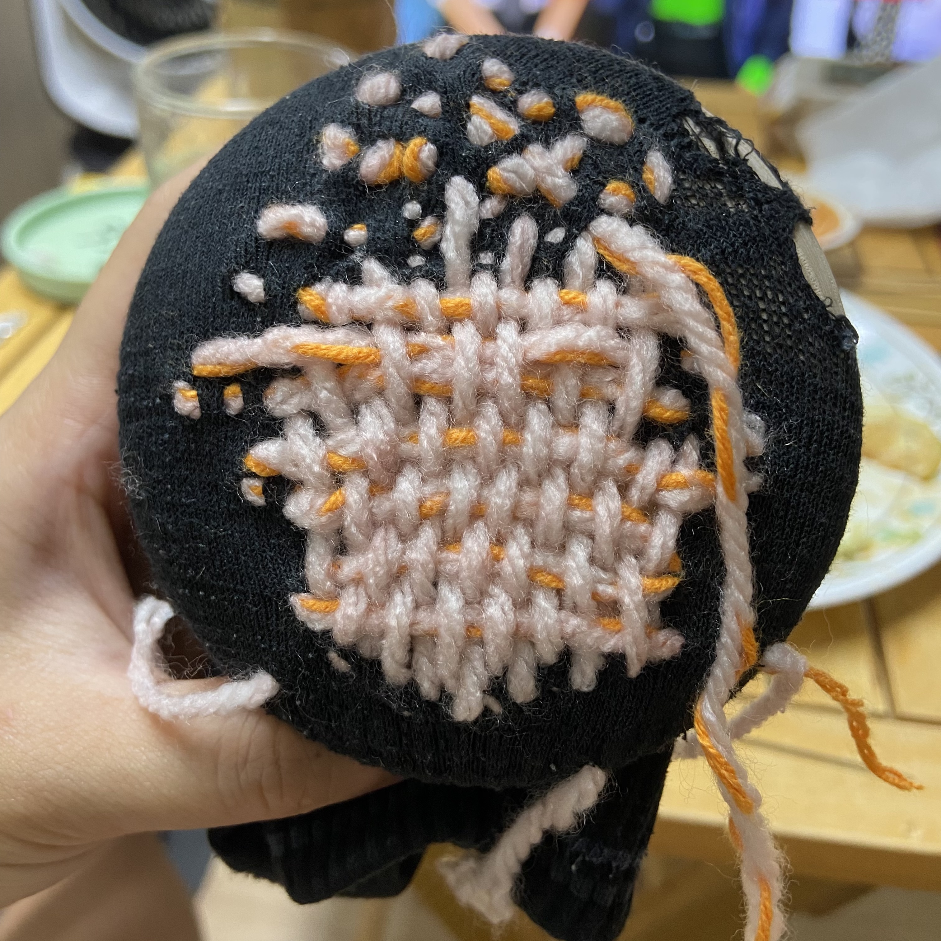 - 준비물 : 구멍난 양말이나 직조자수 해 볼 의류 (없어도 됨)