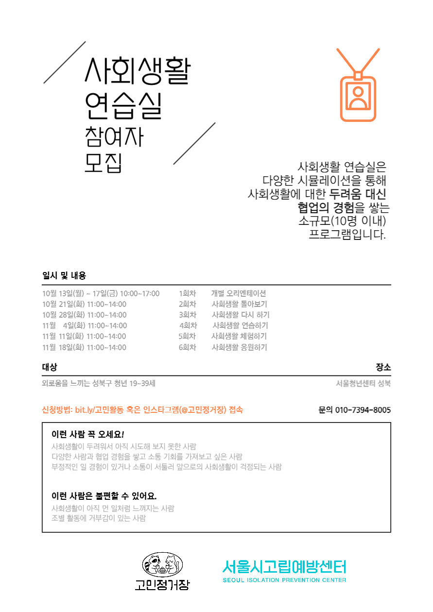 ☑대상: 외로움을 느끼는 성북구 청년(19~39세)