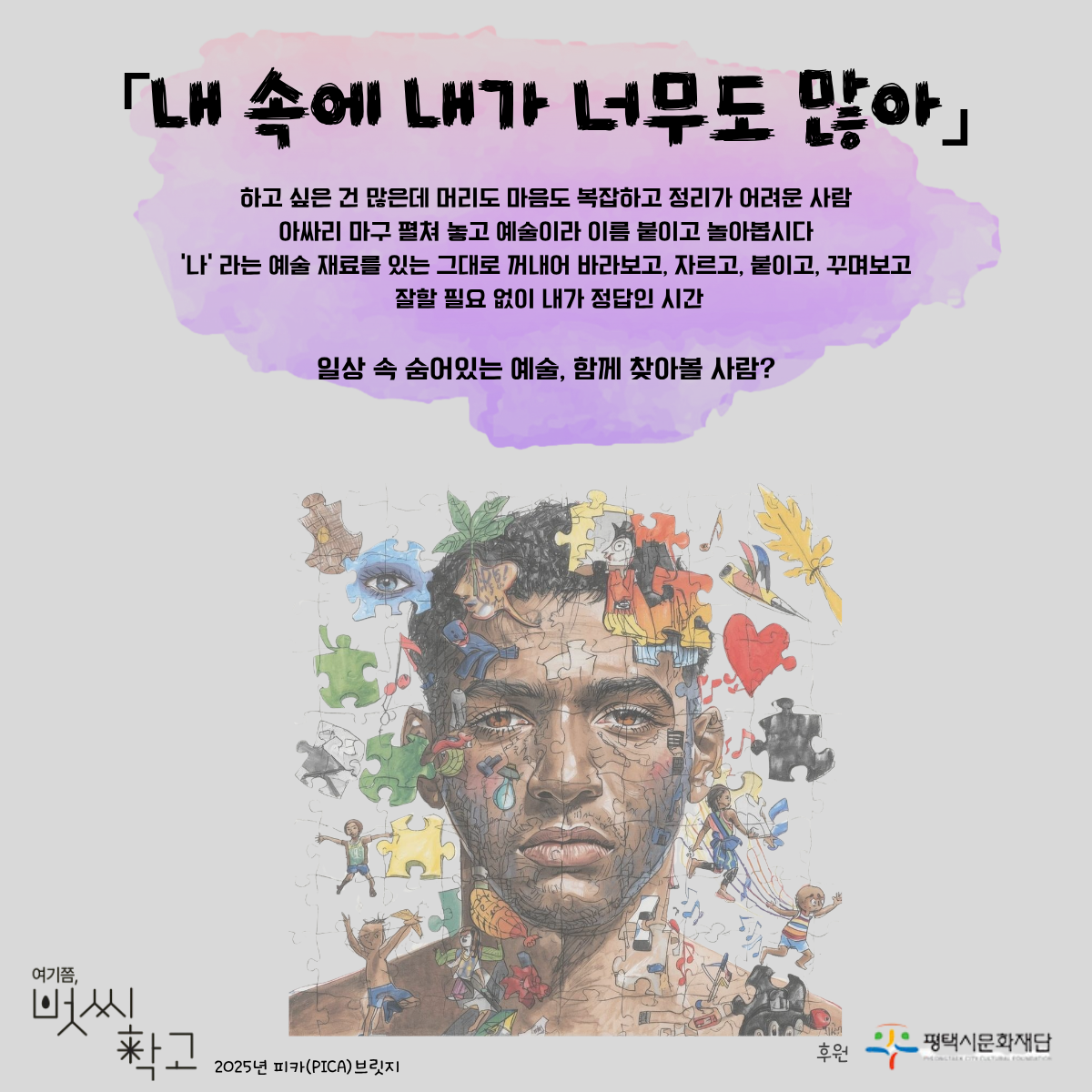 내가 보고, 듣고, 만지고, 먹고, 느끼고, 경험해 온 모든 것들이 예술 재료가 될 수 있음을 직접 체험하는 시간을 만들고 싶습니다.