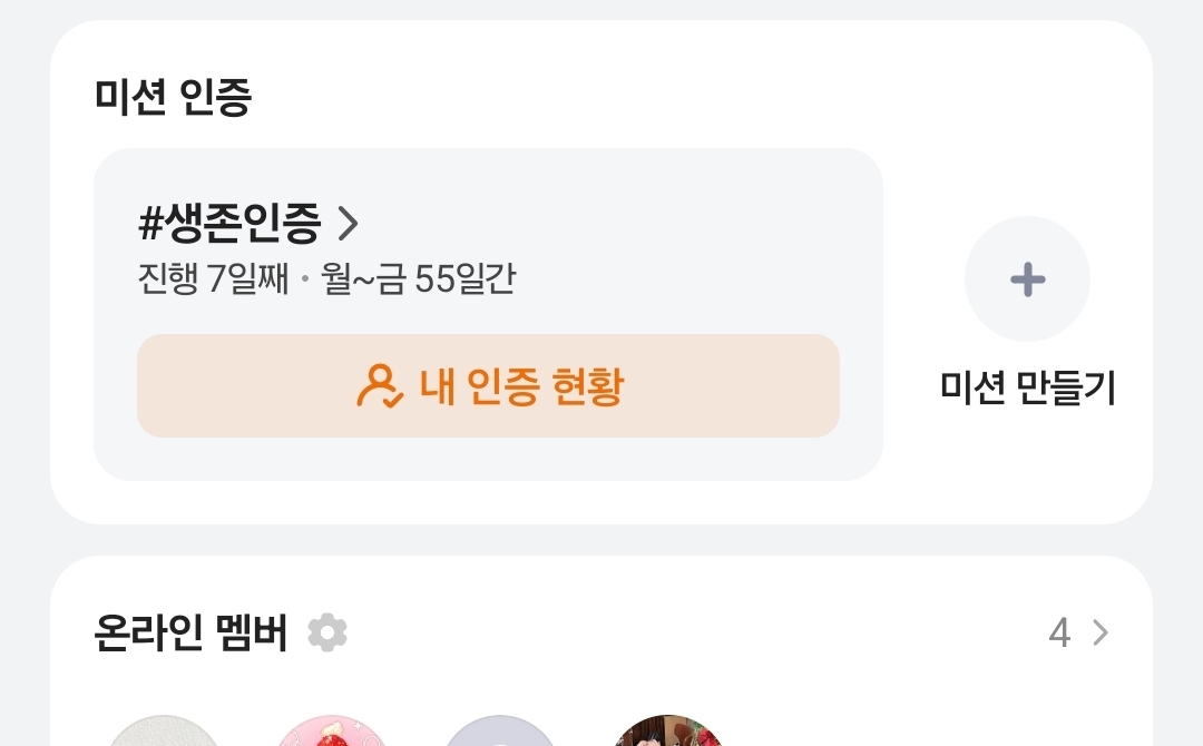 - 1일 초과시 다음날까지 밴드에 @닉네임 생존인증 궁금해요! 안부 메시지만 발송.